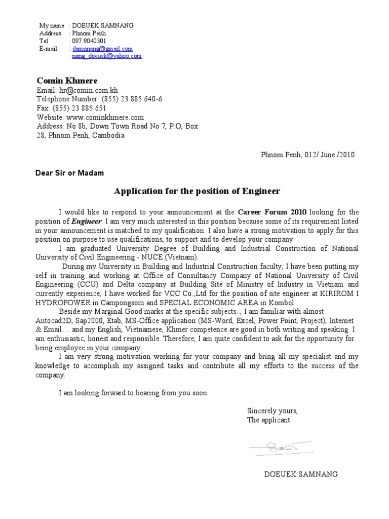 Cover Letter Sample Khmer / Writing a cover letter is essential when applying for jobs.. The difference between a cover letter & writing sample. You need to provide several types of documentation when you apply for a position or when you go to an. An activities director handles all aspects of planning corporate events for employees of a given company. Check out our great cover letter example to get ideas for how to sell yourself to employers! Wow your future employer with this simple cover letter example format.